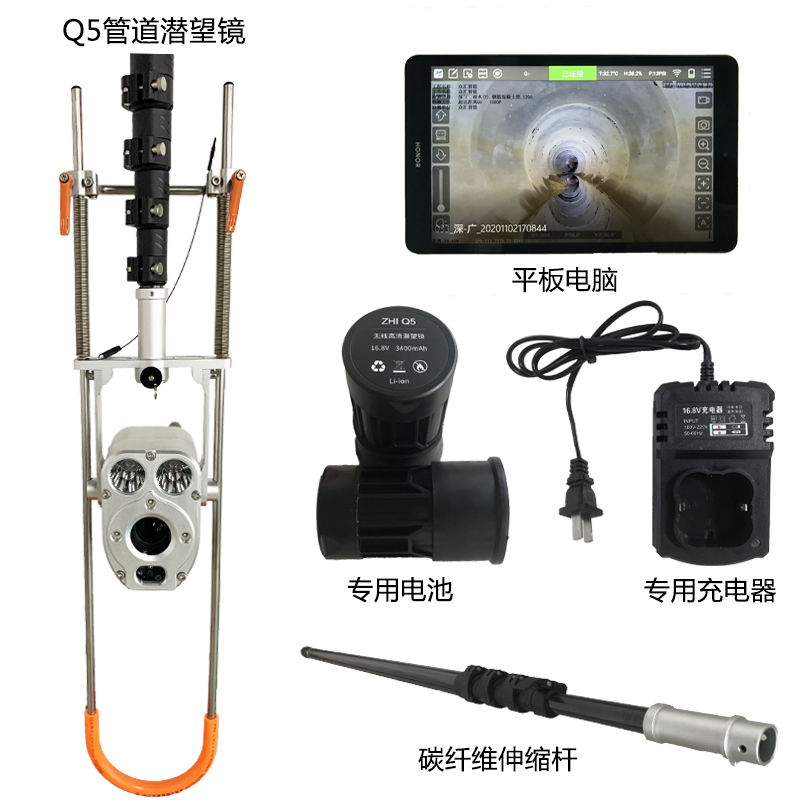 Q5超远距管道潜望镜,是一款影像快速检测仪,该产品采用一体化设计,包括高清数字摄像系统、特殊照明系统、激光测距、无线数据传输系统、平板控制器、碳纤维伸缩杆和视频处理专用软件。该产品具有测量距离远、高可靠性、功能完善、操作方便等特点。 产品已广泛应用于市政排水管道快速视频勘察,隧道涵洞内部空间状况视频检测,大型容器罐体内部视频检查,槽罐车内部视频检测等;